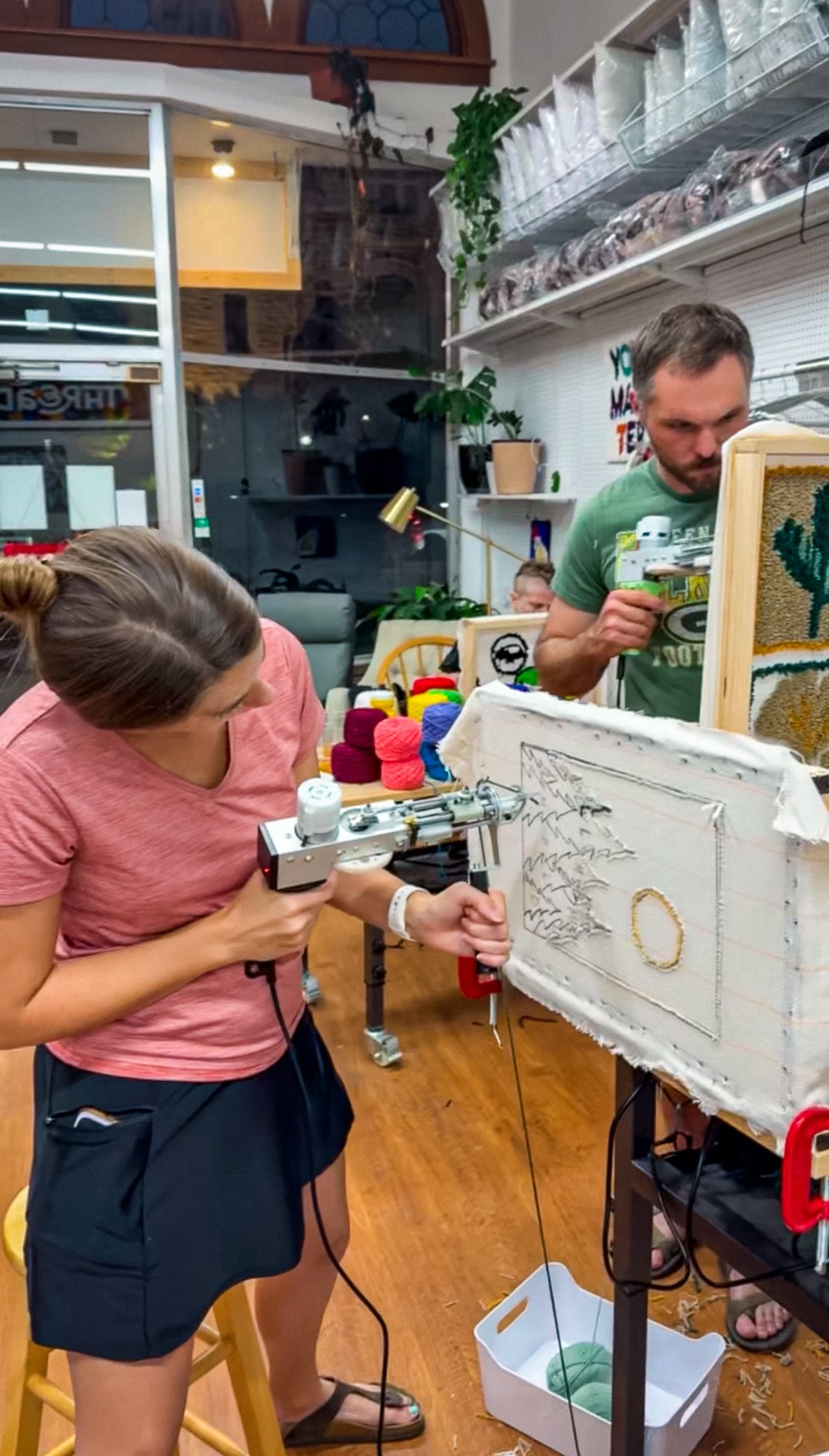 We had a fantastic afternoon tufting! Three generations learned a new craft and had a great time. There are endless design options and colors to choose from. With some quick instruction and practice we were off and running. We can't wait to go back do it again - the studio environment is super friendly and supportive. There's nothing better than crafting your own design with power tools!